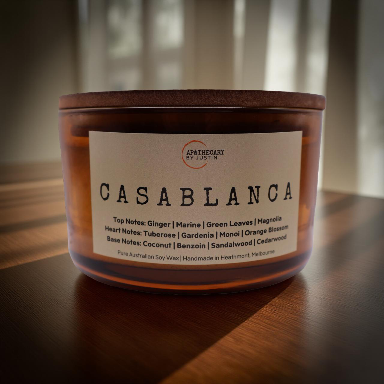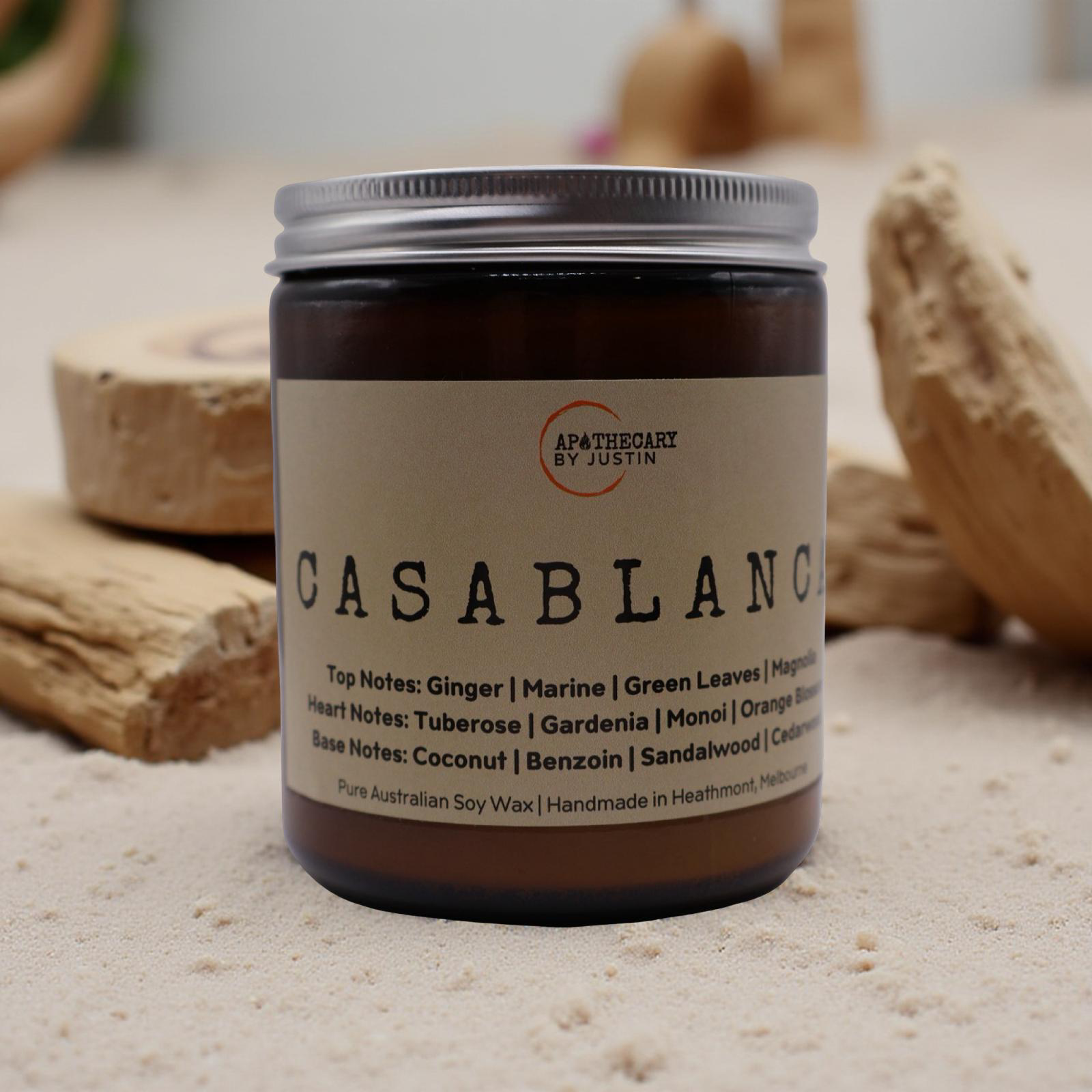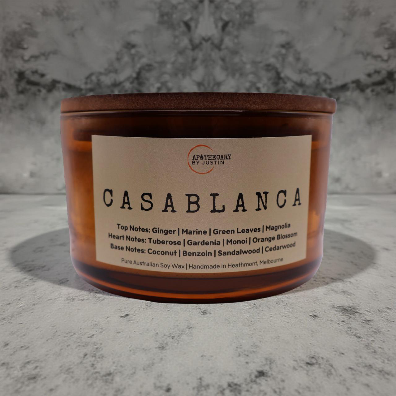 Casablanca is a coastal dream—fresh, floral, and quietly seductive. It opens with a bright, invigorating breeze of ginger, marine greens, and soft magnolia, capturing the feeling of standing at the edge of a sunlit shoreline. In the heart, a lush bouquet of tuberose, gardenia, monoi, and orange blossom blooms with exotic depth, filling the space with a creamy, radiant floral warmth. As the candle burns deeper, smooth coconut, resinous benzoin, velvety sandalwood, and grounding cedarwood melt into a rich, comforting base that lingers long after the flame is out. Poured as a premium candle, Casablanca transforms any room into an elegant coastal escape—fresh, sensual, and beautifully timeless.