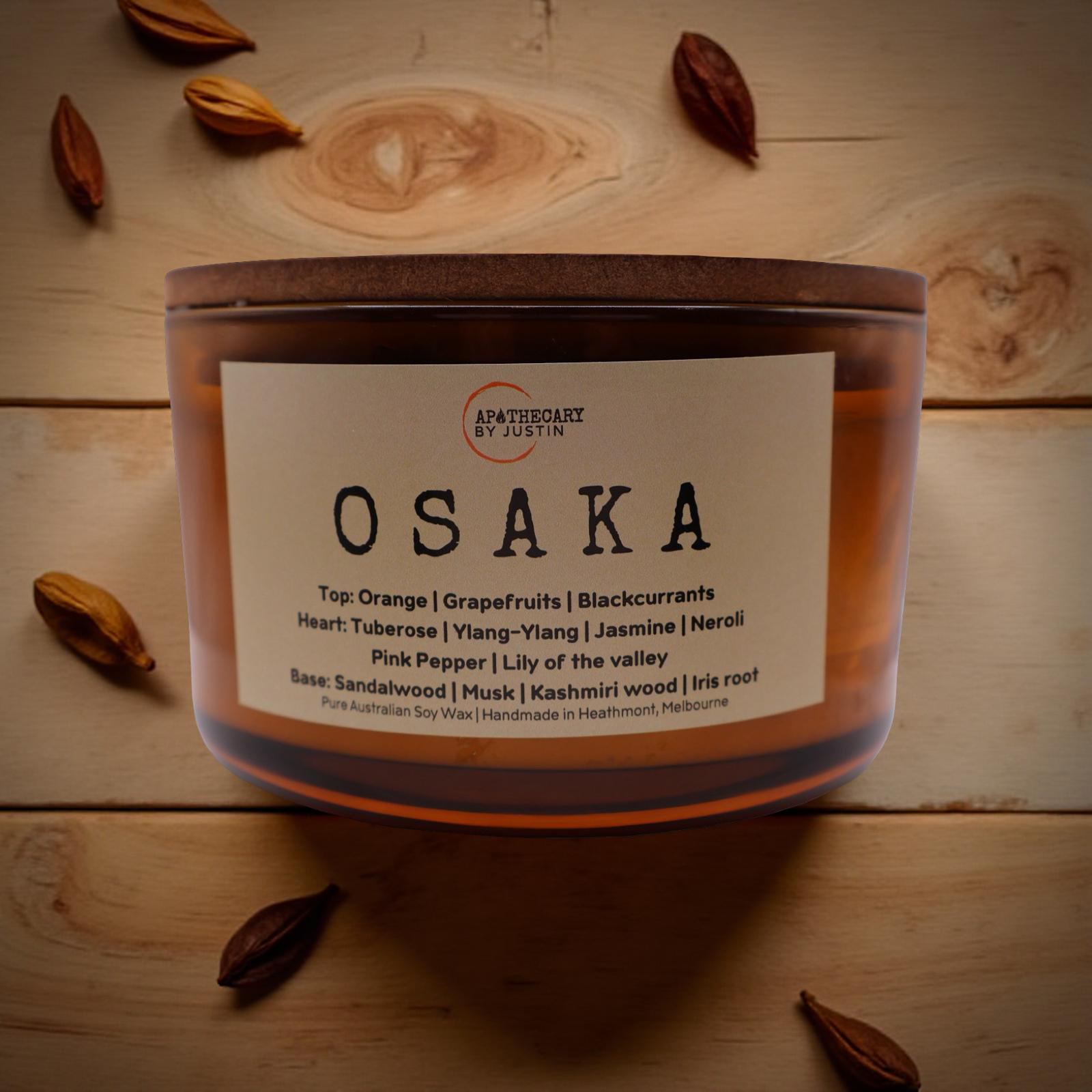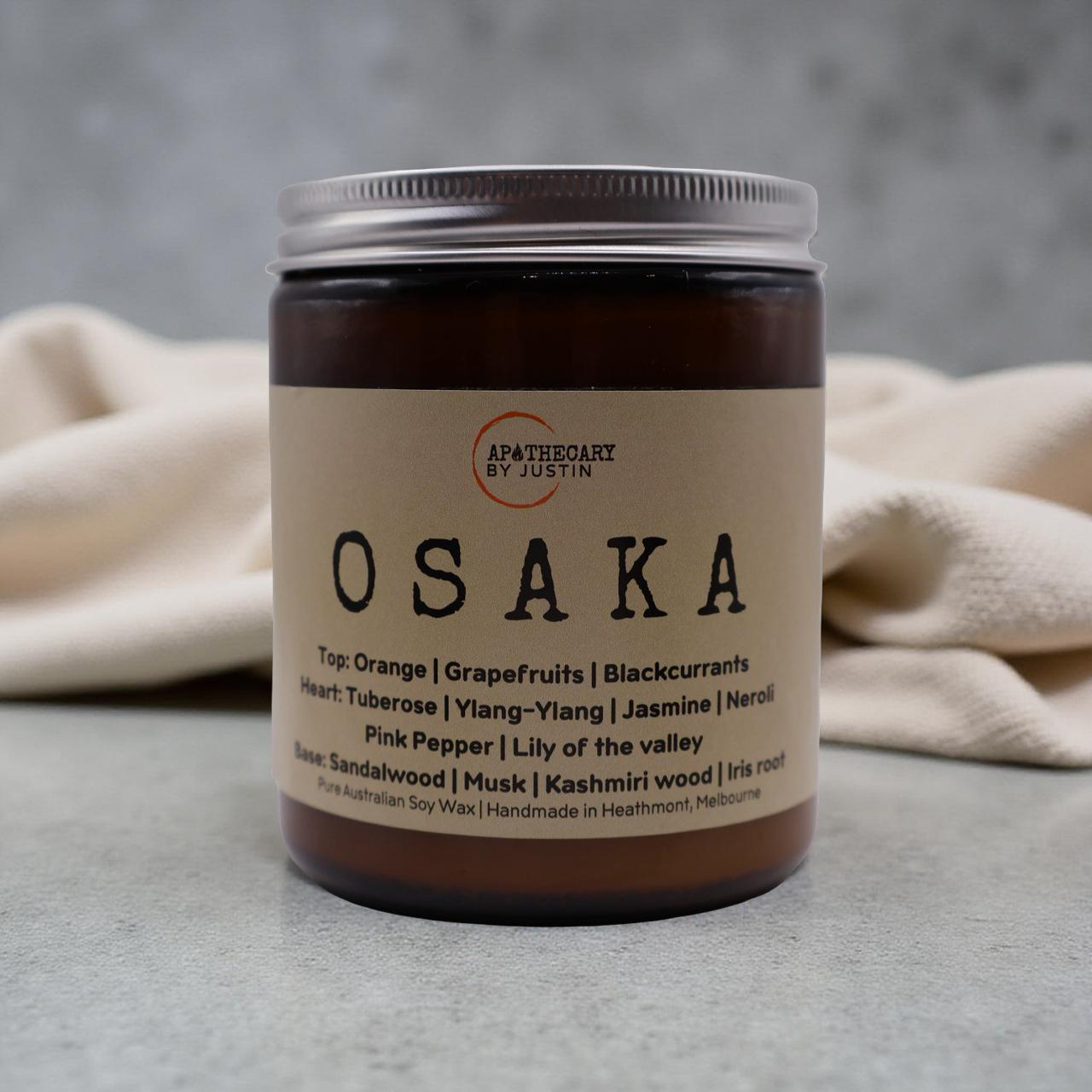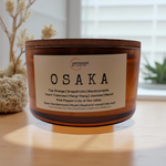 Osaka. A magnificent candle transports you to a vibrant, fragrant garden, starting with its invigorating top notes of zesty orange, refreshing grapefruit, and the sweet-tart essence of blackcurrant. As the candle burns, a rich bouquet unfolds, featuring the luxurious floral notes of tuberose, ylang-ylang, and jasmine, accented by the bright citrus of neroli and the subtle spice of pink pepper. The delicate touch of lily of the valley adds a fresh, green nuance to the heart, creating an enchanting sensory experience. Finally, the base notes of creamy sandalwood, soft musk, and exotic Kashmiri wood ground the fragrance, while the earthy iris root introduces a sophisticated depth. Together, these elements create a complex and harmonious aroma, embodying the essence of a bustling yet serene cityscape, perfect for inspiring creativity and relaxation.