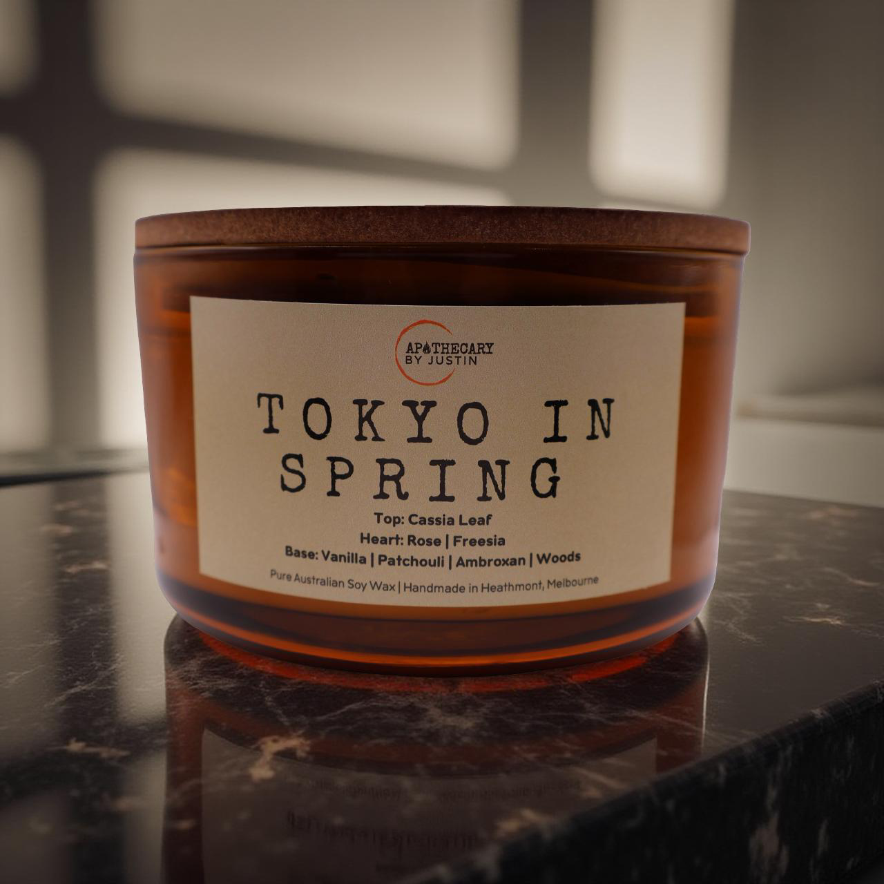 Experience the vibrant essence of a blooming city with the Tokyo in Spring candle. This captivating fragrance opens with the fresh, herbaceous notes of cassia leaf, evoking the invigorating air of early spring as blossoms begin to awaken. This bright top note sets the stage for a beautifully layered olfactory journey.